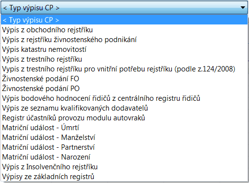 V horní části formuláře se z roletového menu vybere Typ výpisu CzechPOINT .